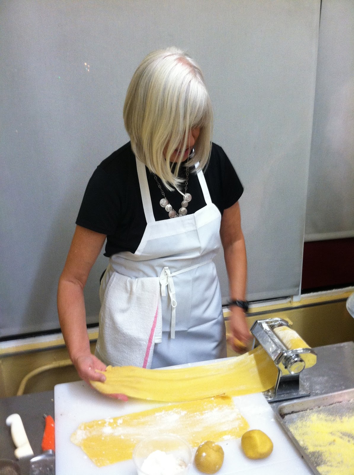 Along the way, we also learned how to make a perfectly fried fritter; the art of delicately searing scallops; and how to use a machine to create delicious homemade pasta. Who knew you just mixed up flour, salt and eggs, kneaded it for a while to create a dough, then ran it through a pasta machine? It’s easy to feel like an Italian capo when Chef Eric is there to give lessons! It actually made me want to hit a Williams-Sonoma for a machine of my own.